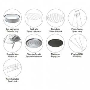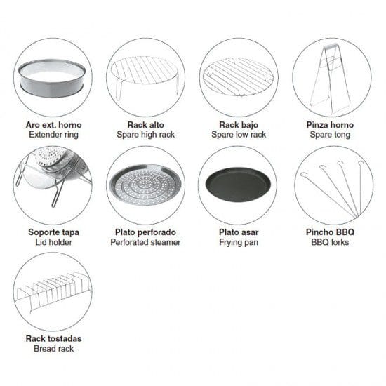 Forno halogênio de convecção de 1400W com conjunto de acessórios incluídos. Ideal para cozinhar saudável, já que não precisa de óleo.