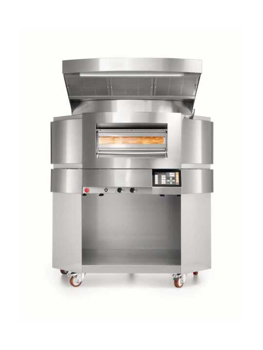 Forno elétrico de uma câmara com base giratória; Sistema de controlo “Touch Screen”; Temperatura diferenciada teto e chão; Resistências diferenciadas inferior e superior; Controlo da direção e velocidade de rotação da placa de cozedura; Iluminação interna dupla com lâmpadas halógenas; Superfície de cozedura em pedra refratária; Guarnição de isolamento térmico entre a porta e câmara de cozedura; Sistema de controlo de emergência eletromecânico;