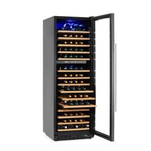 Os frigoríficos para vinho de zona dupla para 160 garrafas são uma unidade de refrigeração única de elevada capacidade com um design elegante e moderno. Uma vasta gama de temperaturas torna-o perfeito para armazenar vinho, como: Bordéus, Rioja, Sauvignon ou Prosecco.