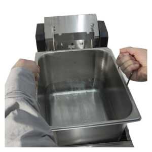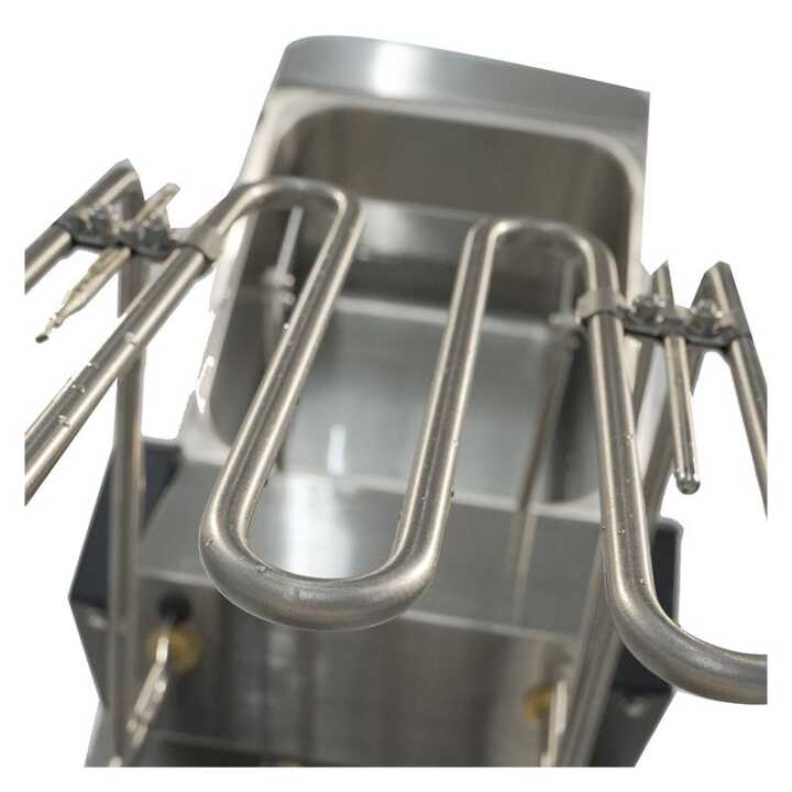 É fornecido com um depósito de óleo amovível e fácil de limpar. Os elementos de aquecimento também podem ser retirados e limpos sem problemas. Além disso, possui um interrutor do nível de óleo e uma proteção contra temperaturas elevadas para um funcionamento seguro e prático. O seu tamanho compacto torna-o perfeito para gastrobares, tabernas, bares de vinho ou cafés-restaurantes.
