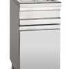 Os tanques moldados em aço inox AISI 304 18/10 com cantos arredondados são fixados à bancada com soldagem contínua para facilitar a limpeza e desinfecção