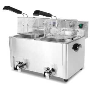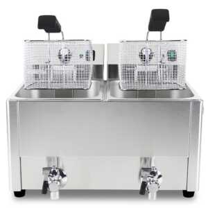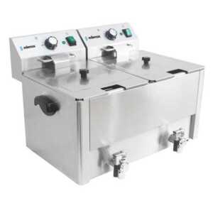 Os modelos de 8 litros têm uma torneira de drenagem para esvaziar o óleo.