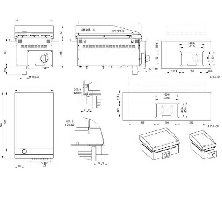 Dimensões totais (mm): 700 x 600 x 266