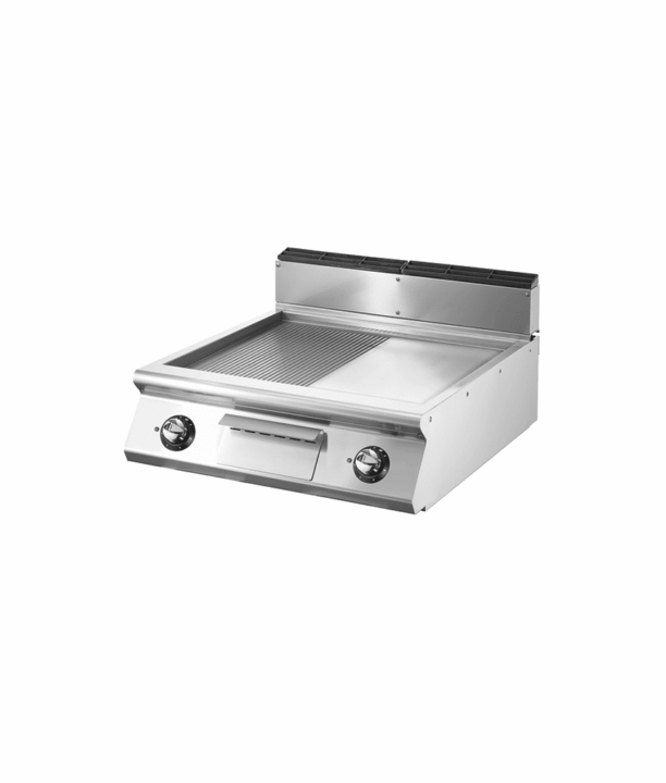 Fry Top elétrico com 1/2 placa lisa e 1/2 placa nervurada (800).