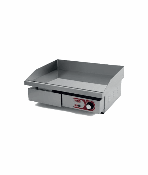 Fry-Top elétrico de bancada com placa lisa, com estrutura em aço inoxidável e placa em ferro.