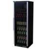 Com duas portas Seis prateleiras planas e duas prateleiras inclinadas em varão plastificado preto, o que lhe confere uma capacidade para 144 garrafas de 0,75cl