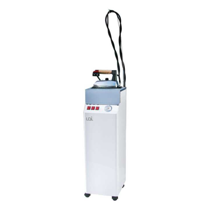 Gerador de vapor com caldeira de 2,8 lt equipado com um sistema automático de recarga de água que garante um fornecimento ilimitado para a caldeira.