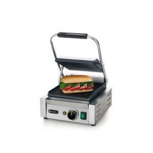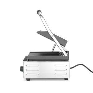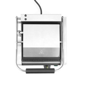 Levante o grelhador superior com a pega resistente ao calor e bloqueie-o em qualquer posição graças ao mecanismo de mola.