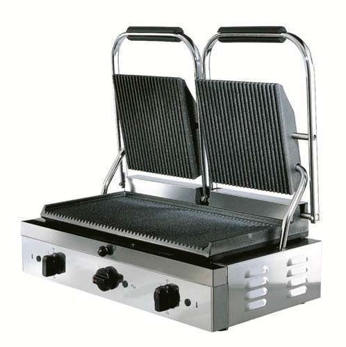 Feitas em chapas de aço inoxidável e ferro fundido liso ou com nervuras, estão equipadas com elementos de aquecimento blindados e termostato para controlar a temperatura. Eles são protegidos por termostatos de segurança e fornecidos com uma gaveta para recolher os sucos resultantes da cozedura. As placas quentes são equipadas com alças isoladas e entregues com uma escova de aço inoxidável para limpá-las. Eles têm termostatos duplos e placas superiores independentes para permitir a cozedura separada.