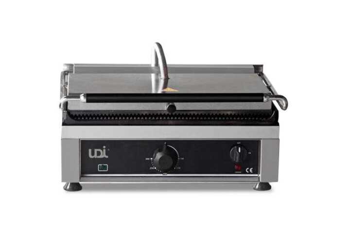 Grelhador com prensa simples nervurado (placa superior e inferior) Aquecimento regular do calor em espiral em toda a superficie da placa.