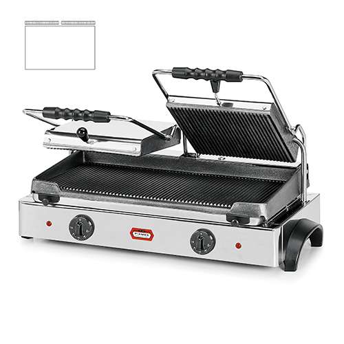 Grelhador/tostadeira duplo de contato liso com 2 tampas caneladas Grelhador/tostadeira duplo de ...