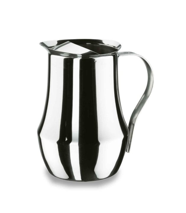 Frasco de 2 l de capacidade, com um corpo bombado e retentor na borda fabricada em aço inoxidável 18/10 de alta qualidade e excelente resistência à corrosão.