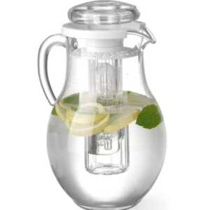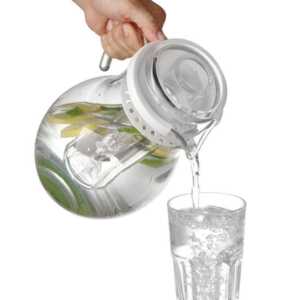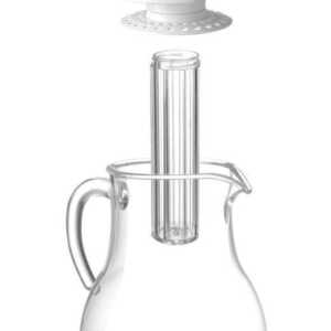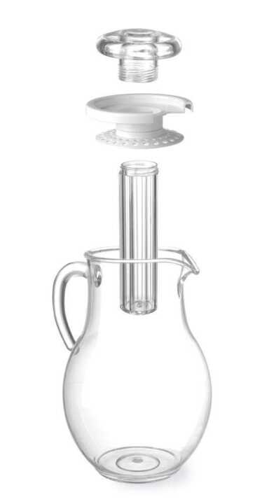 Modelo com formato de pera em plástico SAN transparente resistente a riscos e com tampa.