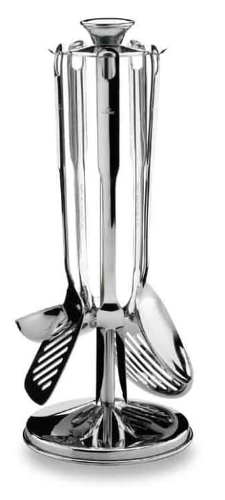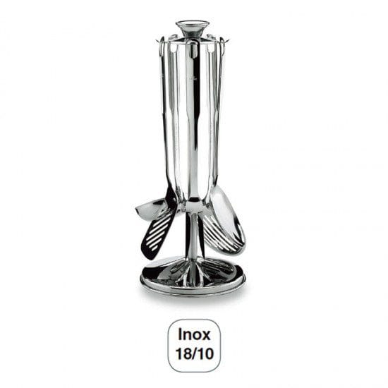 SKU: LA62601Jogo de cozinha com 5 peças da Série Super Monobloco e suporte com base giratória em aço inoxidável 18/10 de grande qualidade e resistência à corrosão.