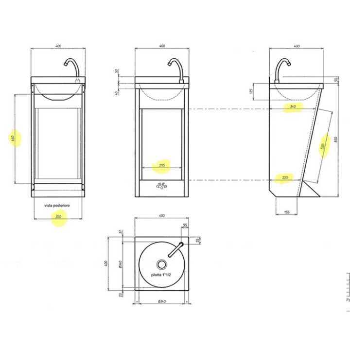 Descrição: Pia de chão com Push System e bica giratória
