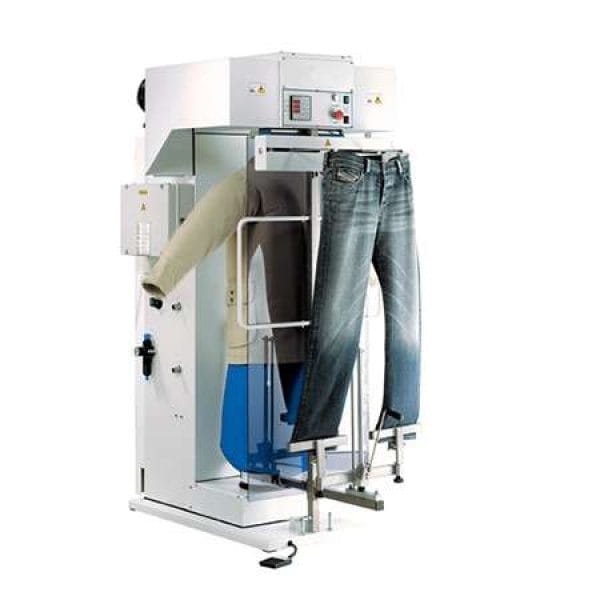 Máquina de passar rotativa para calças e sobretudos.