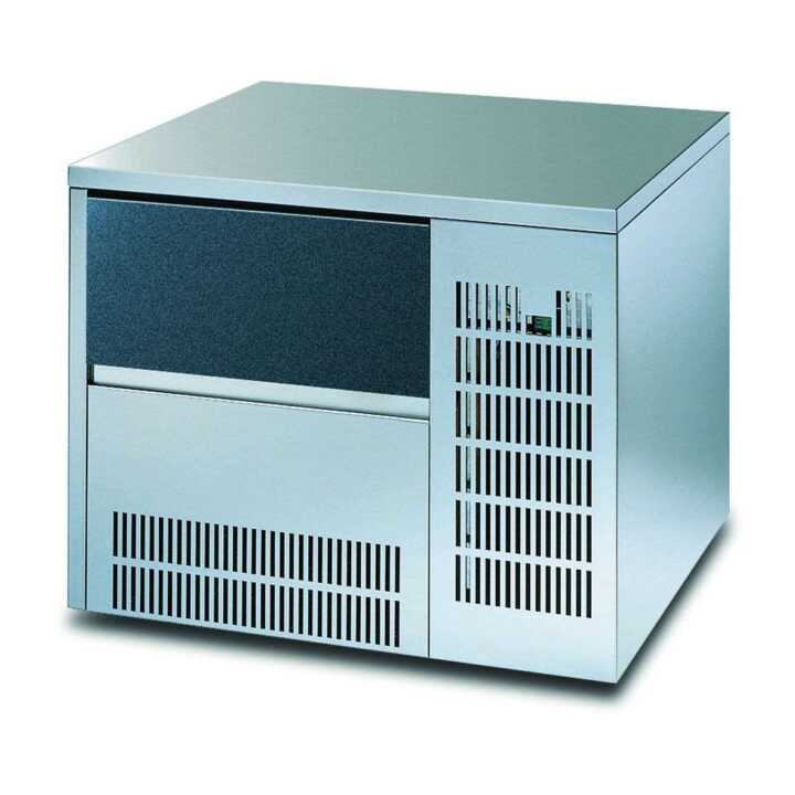A água mais pura forma gelo ao ser pulverizada em um evaporador horizontal enquanto a água rica em minerais retorna ao tanque interno e posteriormente é removida no final do ciclo de produção