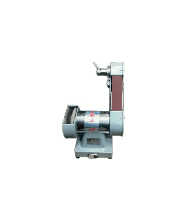 . Máquina de afiar facas com fita de lixa e disco de polir