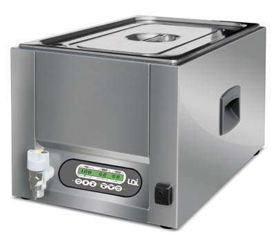 Aparelho de cozedura a vácuo a baixa temperatura. Graças à temperatura controlada e à água sempre em movimento, obtém-se uma cozedura uniforme.