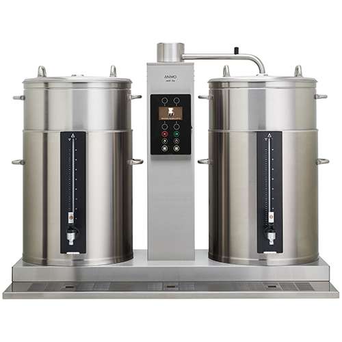 Containers fornecidos com um vidro de nível integrado e torneira com comandos intuitivos, fácil programação, display LCD iluminado, detetor de presença do container arranque lento, sugestão da dose de café, aviso de café pronto, várias opções de limpeza, ligação à rede hídrica 3/4” e com braço de proteção giratório.
