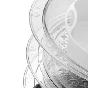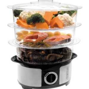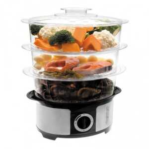 O cocedor de vapor elétrico que te propomos aqui, dispõe de 3 cestas, que permitem fazer até 3 pratos ao mesmo tempo. Programa a duração da cozedura e do resto se encarregará este pequeno e prático aparelho.