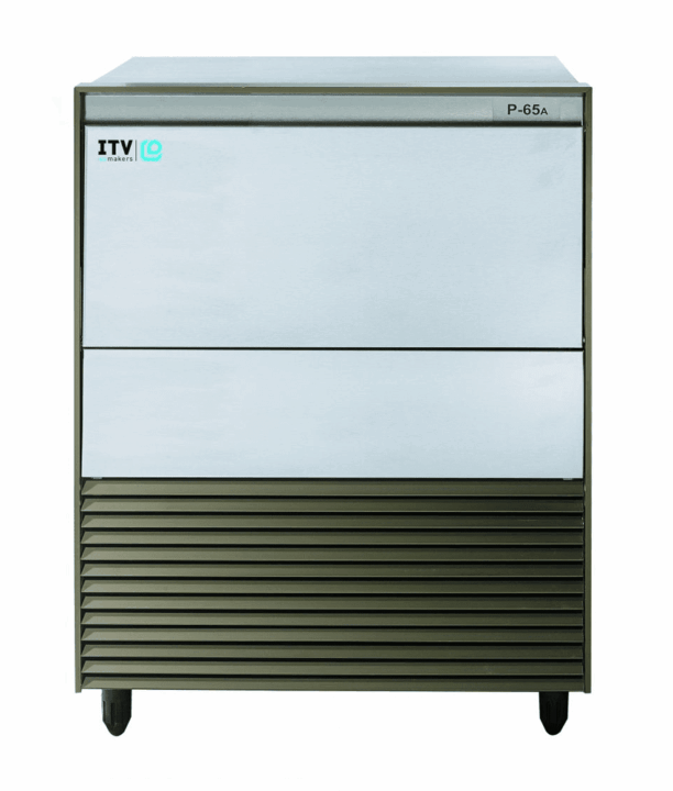 Máquina produtora de gelo em cubo com estrutura exterior em aço inoxidável AISI 304 em combinado com perfis em aluminio anodizado. Interior do depósito em ABS com isolamento.