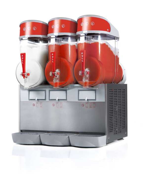 Distribuidor para a produção e distribuição de granizado e outras bebidas geladas com o exclusivo sistema de arrasto magnético patenteado. Confiável, leve e fácil de usar, convida os consumidores graças à visibilidade total do produto contido. Recipiente de policarbonato não tóxico. As densidades do produto podem ser ajustadas.
