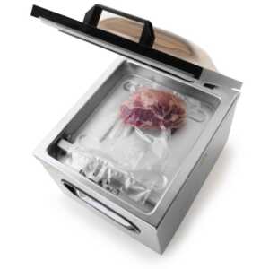 Máquina de vácuo de um sino de 630 W com uma altura interna útil de 11 cm Ideal para uso em cozinhas profissionais de hotelaria e restauração.