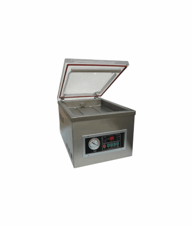 A Máquina embaladora a vácuo permite prolongar o tempo de conservação dos alimentos crus ou cozinhados, sem perda do peso, sem ficarem ressequidos, nem misturarem sabores e odores. Equipamento de colocação sobre mesa de trabalho.