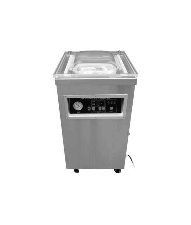A Máquina embaladora a vácuo permite prolongar o tempo de conservação dos alimentos crus ou cozinhados, sem perda do peso, sem ficarem ressequidos, nem misturarem sabores e odores. Equipamento de chão com 4 rodas para fácil movimentação.