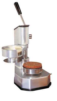 “Esta máquina é de grande ajuda em açougues para preparar e embalar hambúrgueres na folha de celofane. A vantagem mais valiosa desta unidade é a operação simples e fácil: apertar a alavanca formará o hambúrguer, e liberá-lo abrirá a pressão para remover o hambúrguer.
