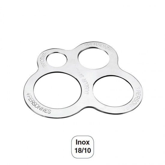 Medidor de massa de 11×9 cm e 4 medidas de acordo com pessoas fabricado em aço inoxidável 18/10 de alta qualidade e excelente resistência à corrosão.