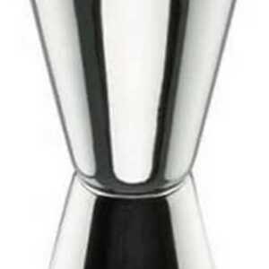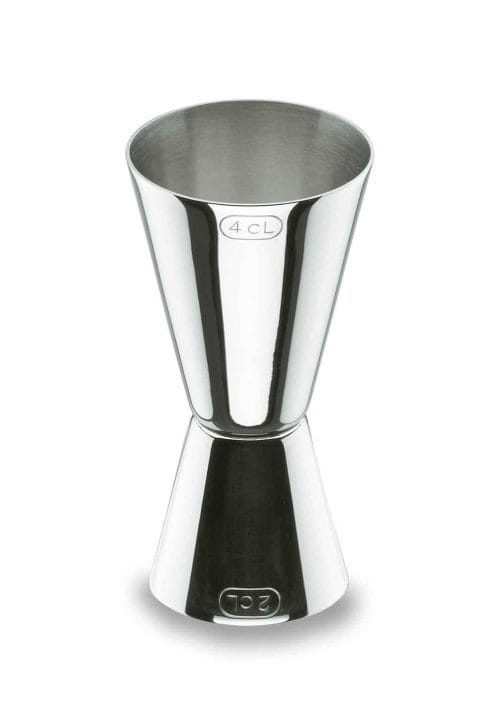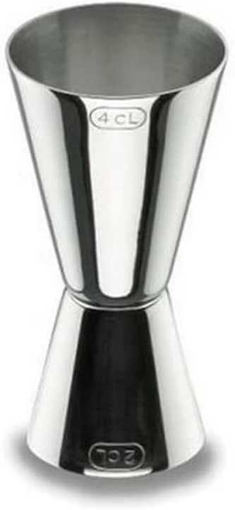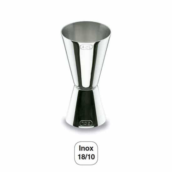 Copo dosador para licores reversível com duas medidas (2 e 4 cl) fabricado em aço inoxidável 18/10 de alta qualidade e resistência à corrosão.