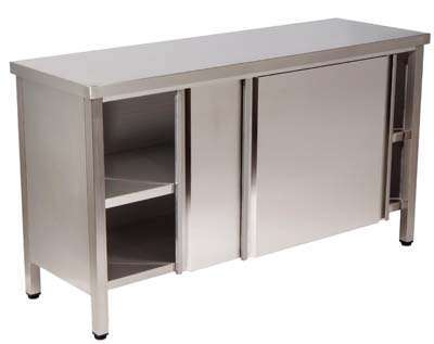 MESA ARMÁRIO PORTA DESL. 2 PRAT.1400x700x850 INOX