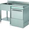 As mesas estão desenhadas para acomodar uma máquina de lavar louça de abertura frontal de 600 x 600 mm.
