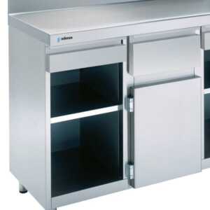 Gavetas auxiliares em aço inoxidável, com sistema de corrediças telescópicas totalmente extensíveis, que permitem a abertura total da gaveta.