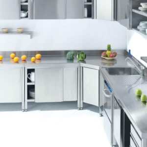 Ajustável aos cantos em ângulo de 90°, para criar um ambiente de trabalho contínuo de mesas e pias Edesa.