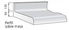 Frente de bancada de 50 mm de altura, com bordas arredondadas.