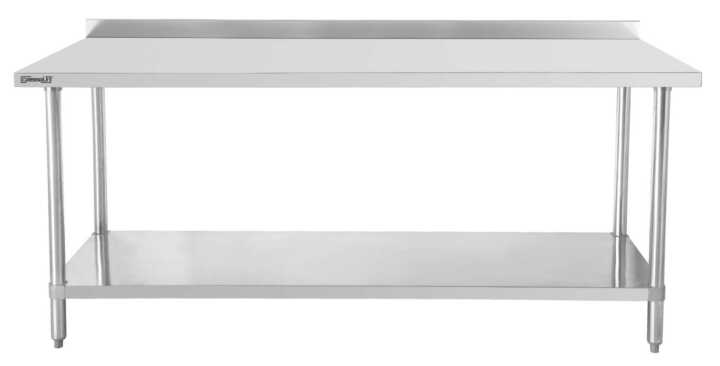 Mesa de trabalho em aço inoxidável 700 com tampo e prateleira 1000 mm
