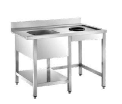 Mesa lava pratos inox; entrada; 1500x735x850; com cuba a direita