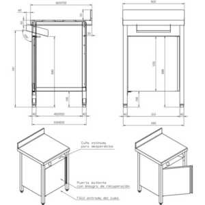 Com espaço livre para colocação de baldes de lixo com diâmetro máximo de 460 mm.