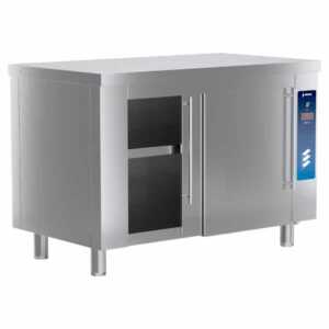 Para uma melhor distribuição do calor, as mesas de 1600 mm incorporam elementos de aquecimento e ventiladores em cada extremidade da mesa.