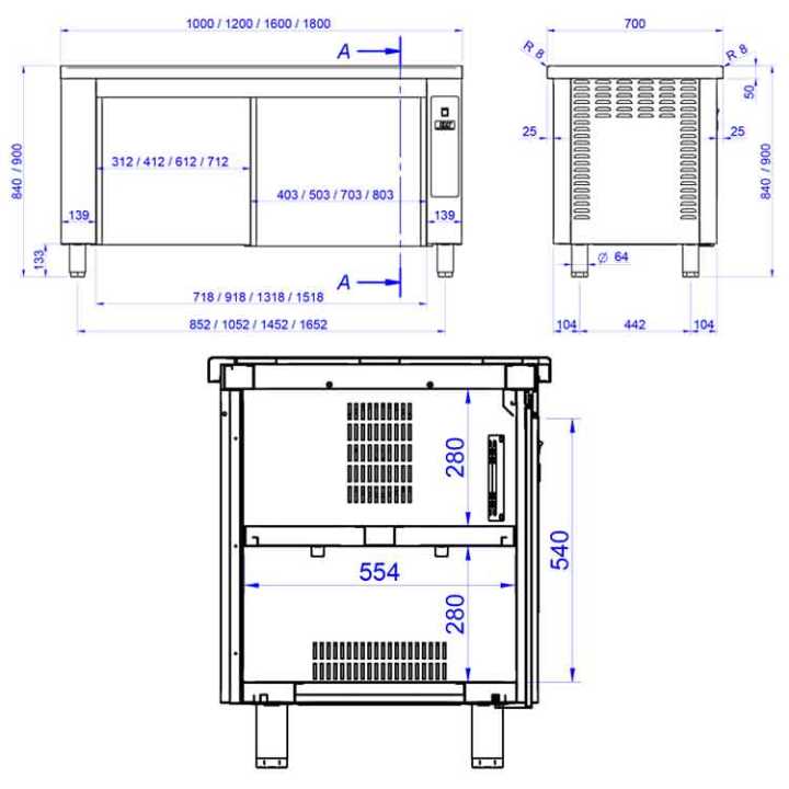 Para uma melhor distribuição do calor, as mesas de 1800 mm incorporam resistências e ventiladores em cada extremidade.