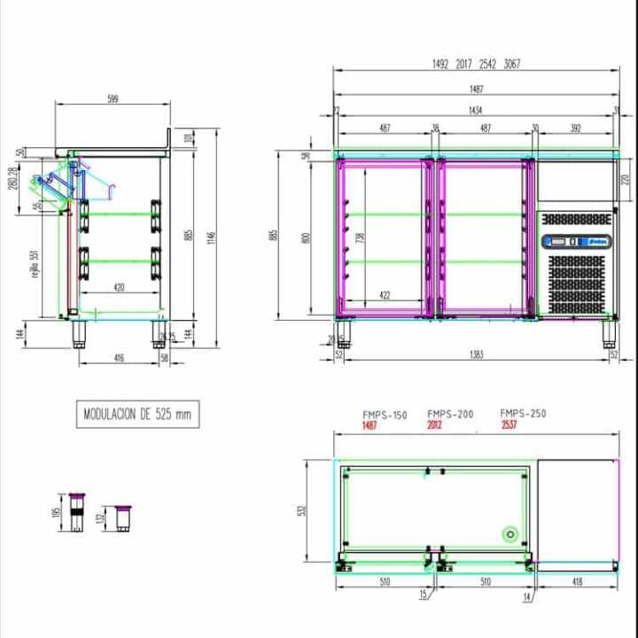 Todos os modelos FMPS incorporam uma gaveta neutra auxiliar localizada acima do controle eletrônico de temperatura da mesa