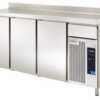 Bancada em aço inoxidável com acabamento acetinado, com borda frontal curva e babador sanitário traseiro de 100 mm