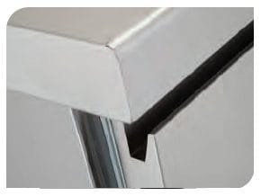 Contra-portas embutidas em aço inoxidável para obter maior isolamento e robustez, com uma régua de vedação fácil de substituir em todo o contorno