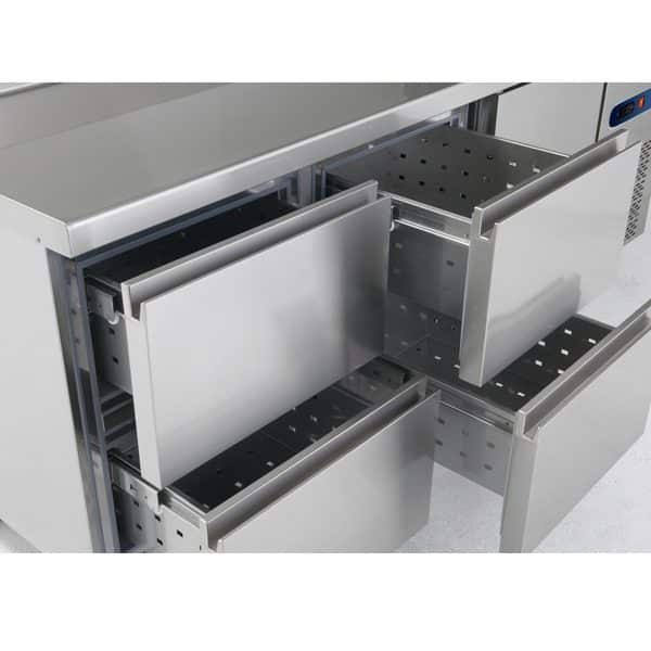 A pedido, eles podem ser fabricados com portas de vidro, sem bancada, com a unidade de refrigeração à esquerda ou remotamente