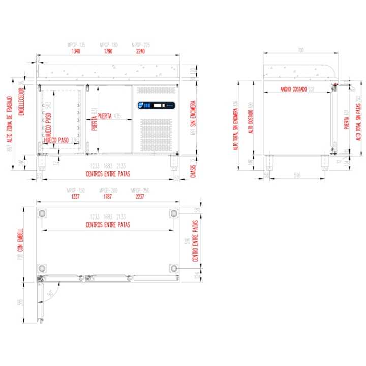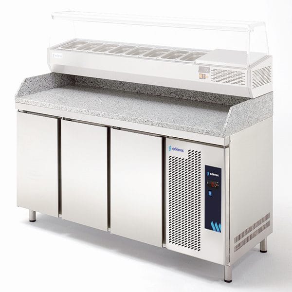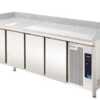 A composição das mesas completas é composta por um conjunto composto por: Mesas refrigeradas (modelos nesta página) e expositor refrigerado para ingredientes (modelos no capítulo vitrines).