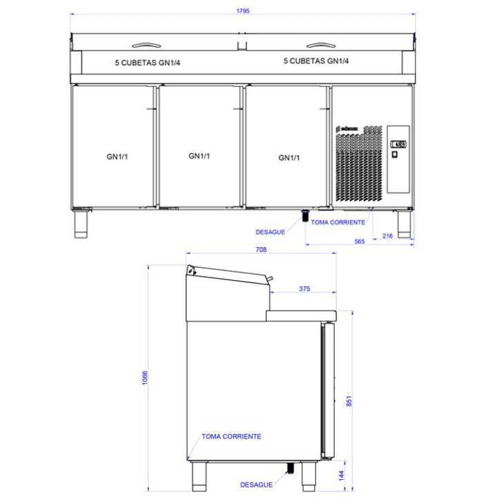 Tipo cubeta GN: 1/4 GN