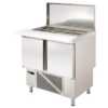 Modelo MPGE-100 HC: Equipado no envelope com mesa higiênica removível de polietileno e tampa basculante de aço inoxidável com duas posições de abertura, uma a 60 ° e outra a 90 °